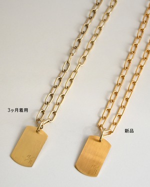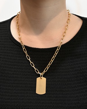 オリジナルロゴ入りプレートに程よい存在感を放つチェーンを合わせたネックレス。ビンテージ調のプレートとキラッと光るチェーンの対比が美しいデザインです。