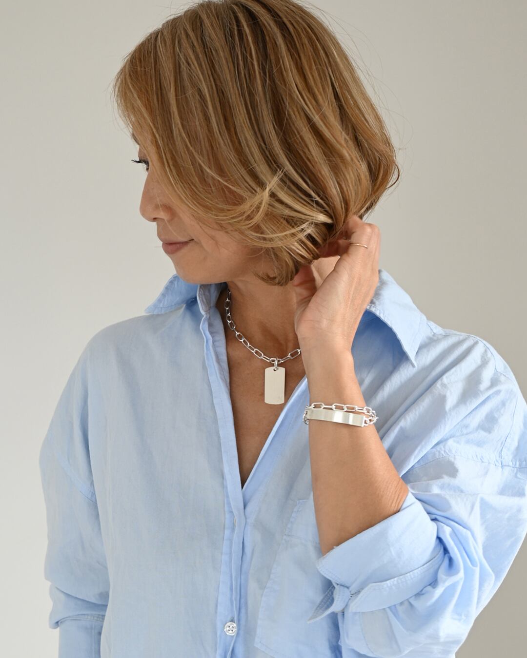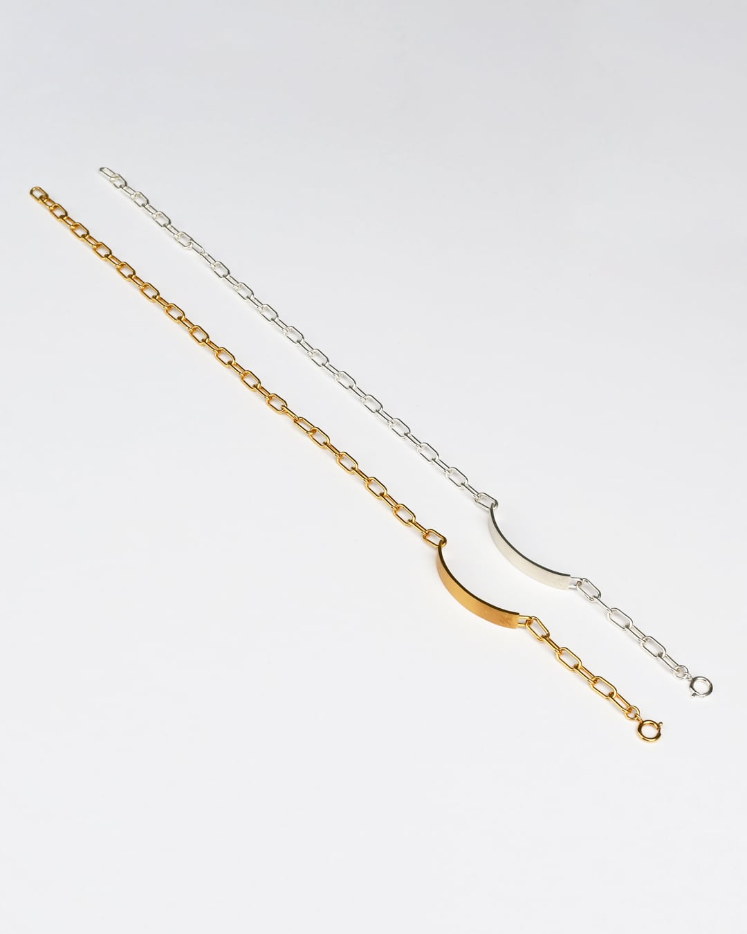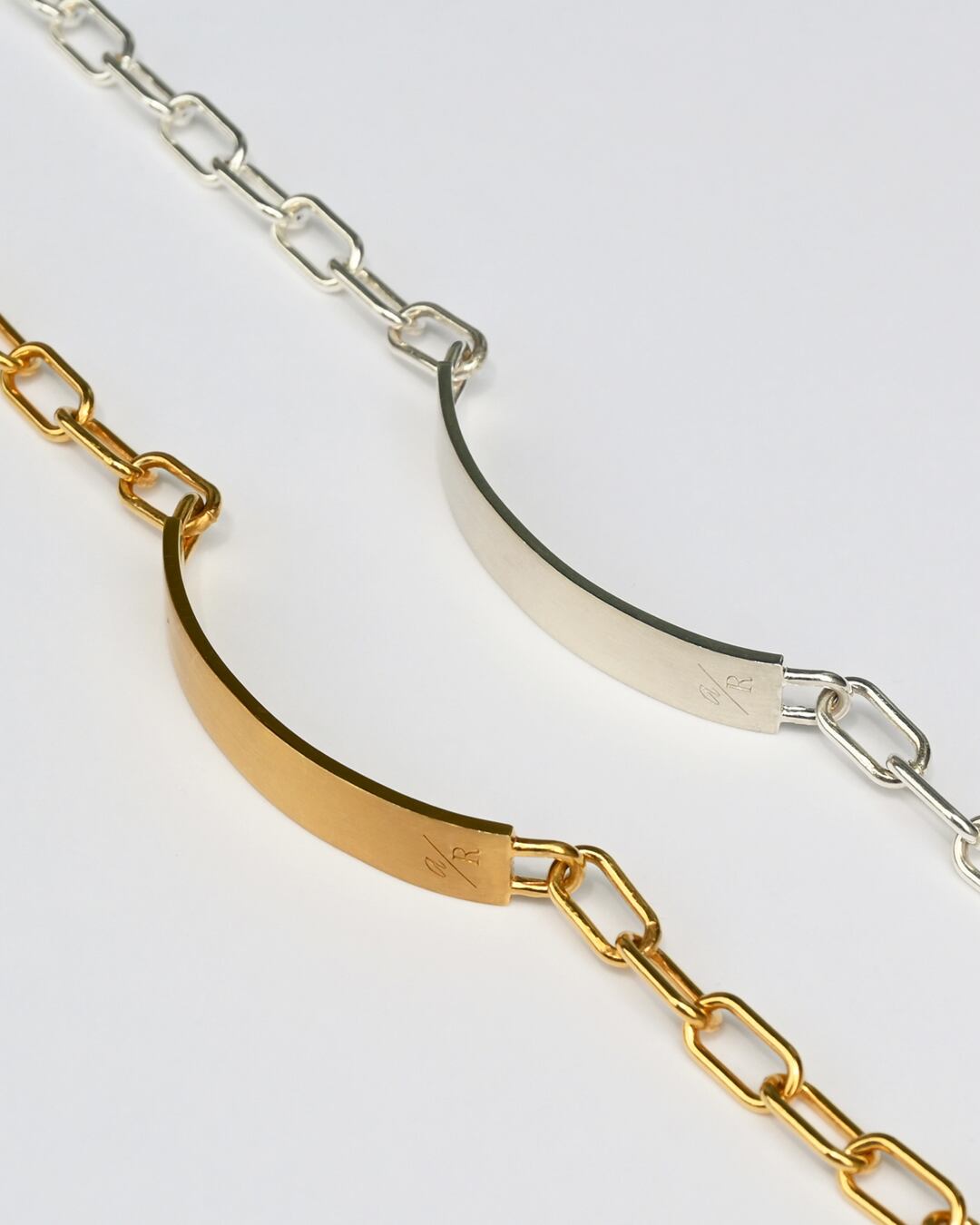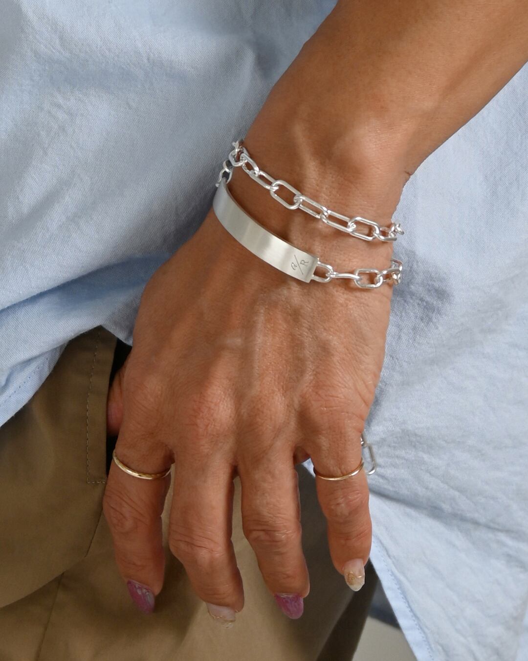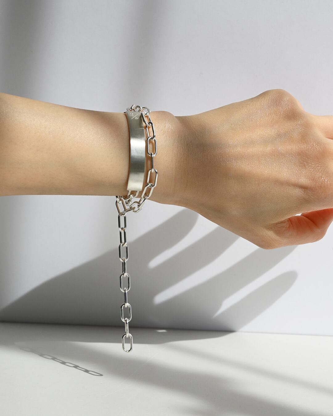 人気のa/Rネックレスと同じチェーンを使用した、普遍的なアイテムであるIDブレスレットをatur×Reiko Abeコラボレーションとして再構築したブレスレット。