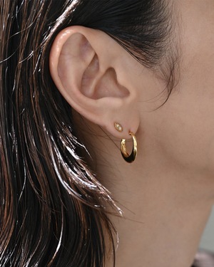 静かな輝きを放つ、マーキスシェイプのピアス。中央にはラボグロウンダイヤモンドをあしらい、ミニマルなフォルムの中に確かな存在感を宿しています。単品でさりげなく、複数のピアスとのレイヤードでもバランスよく馴染みます。