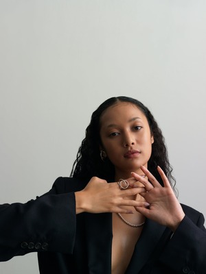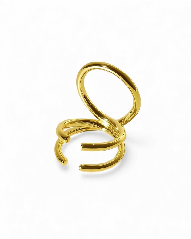 3つの円が重なり合った、立体感のあるデザインが特徴のイヤカフ。存在感がありながらも、軽い付け心地です。右耳用・左耳用がありますが、右耳用を左耳につけたり、左耳用を右耳につけたりすることができるため、気分によってアレンジ可能です。両耳に線対称でつけるのもオススメです。