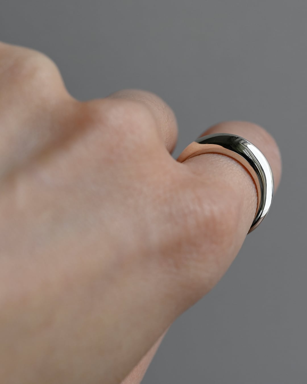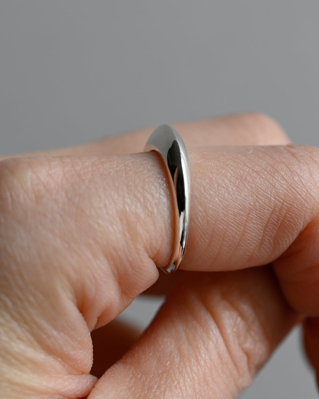 定番のTheo collectionのリング。手の甲は太く、手の平側になるにつれ、細めのフォルムとなっています。日常使いにぴったりなベーシックでジェンダーレスなデザイン。