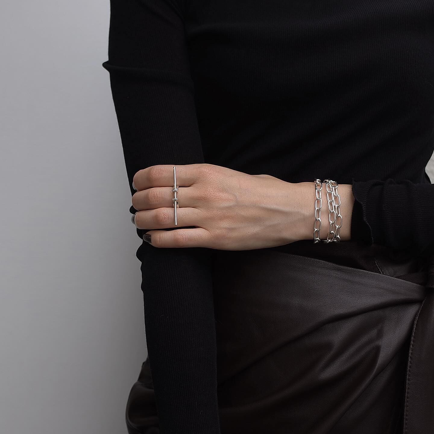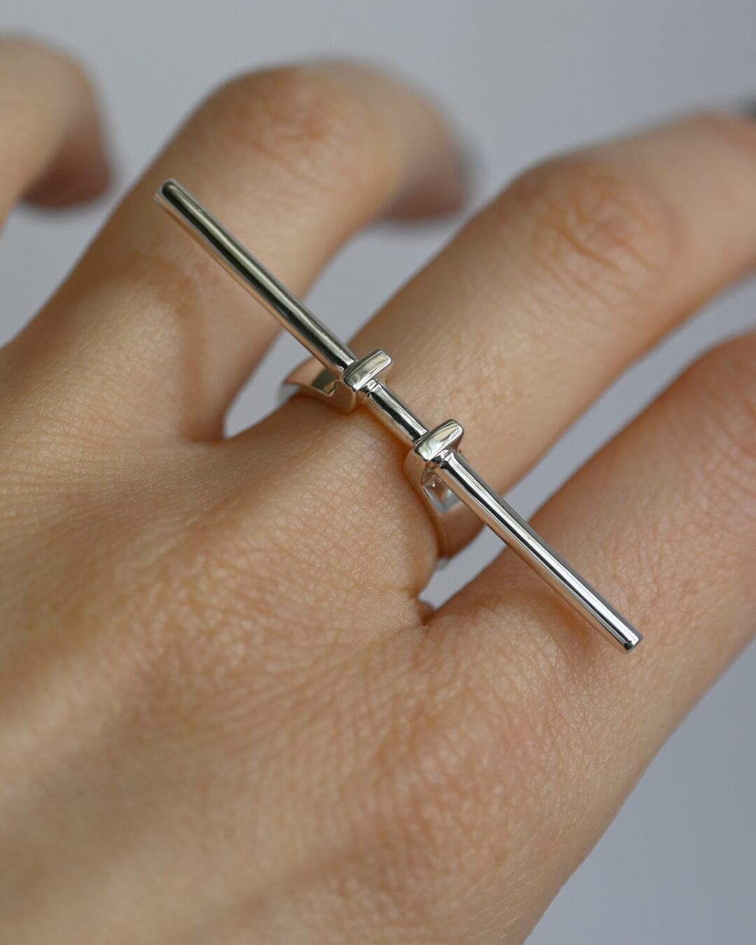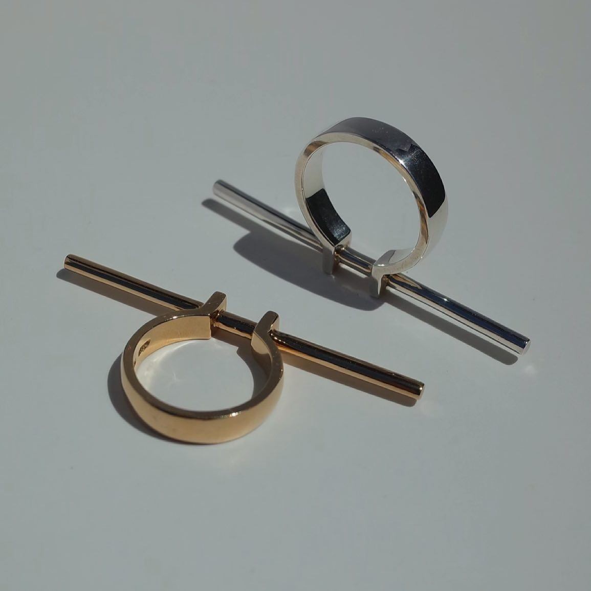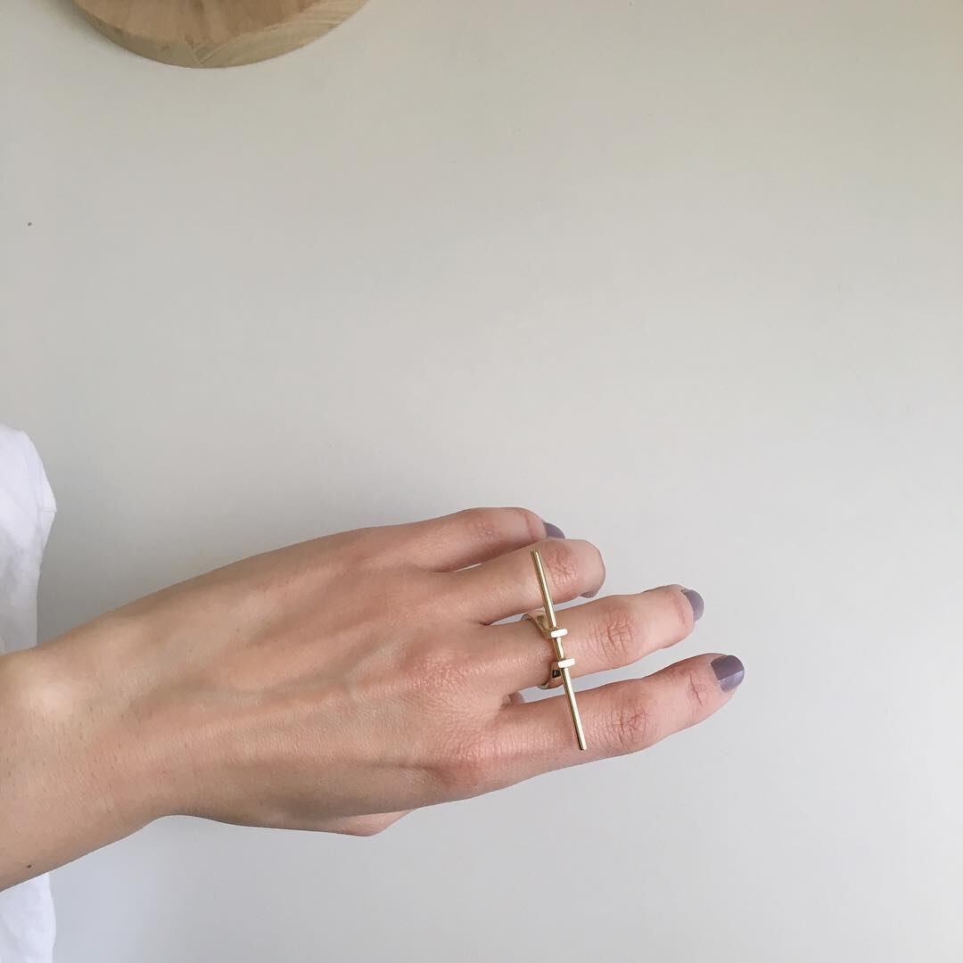 ブランドのコンセプト「シンプル且つ大胆」を体現したTen ring 。特徴的な正面のバーモチーフが、日々のスタイリングにモダンで洗練された要素をプラスしてくれます。中指、または薬指での着用がオススメです。