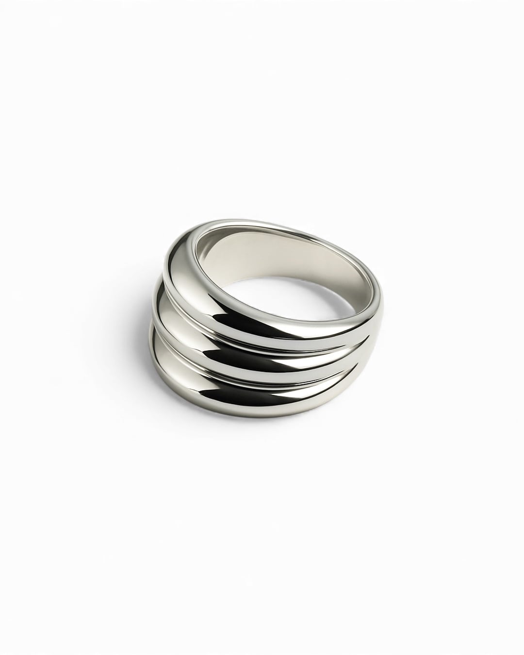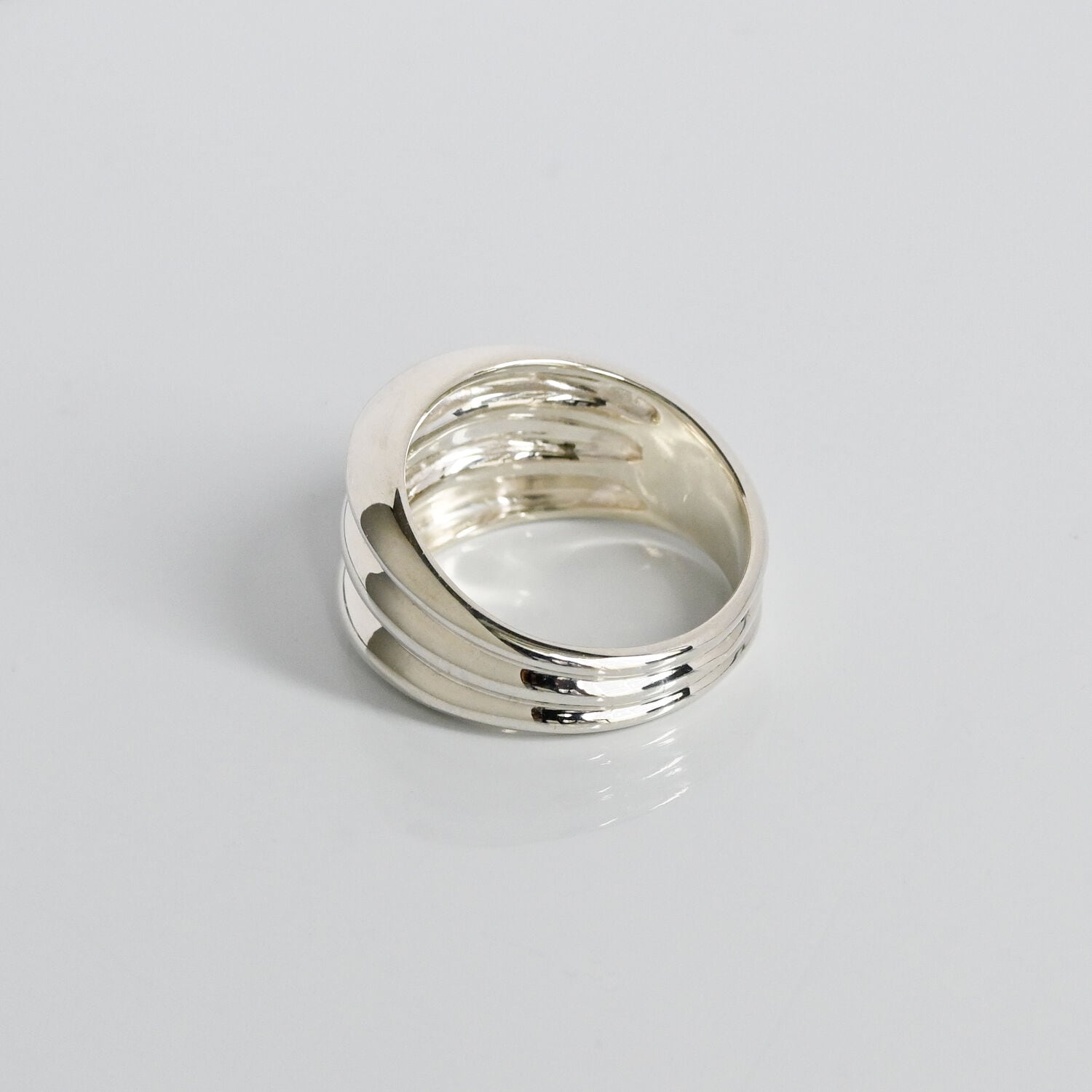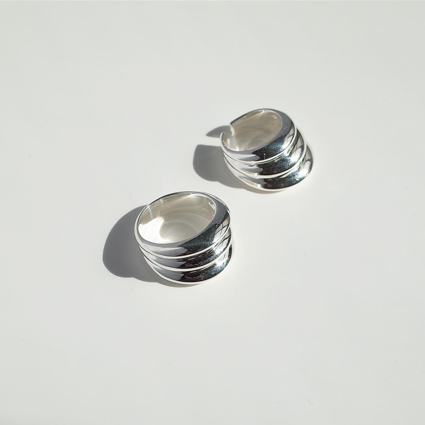 Theo collectionの中で最もボリュームのあるリング。内側を裏抜きしているので、見た目より軽やかなつけ心地です。モダンさとヴィンテージライクな重厚感を感じられるデザイン。幅広のリングは指をすっきり長く見せてくれるのが魅力です。 幅広なデザインのため、通常お選びいただくサイズより1〜2号のサイズアップがオススメです。