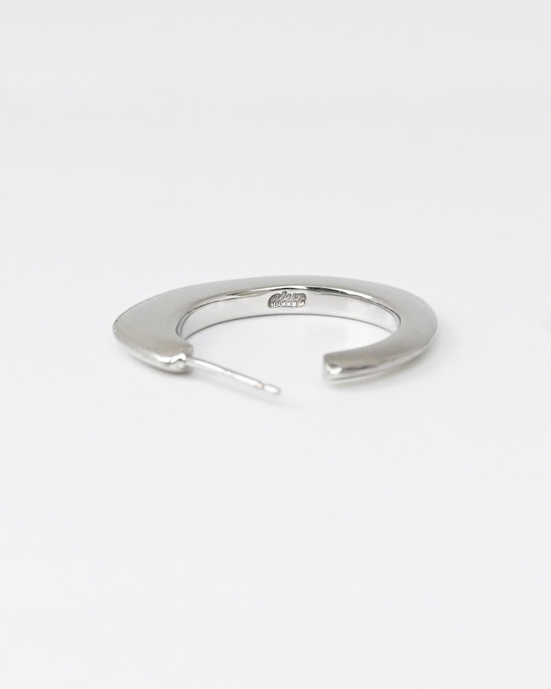 手彫りでカービングされた円みが特徴的なピアス。角はエッジを効かせてシャープな印象に。ペア販売。ピアスキャッチ付き。(P4では[Simon earrings S]と[Simon earrings L]のサイズの比較がご覧いただけます。)