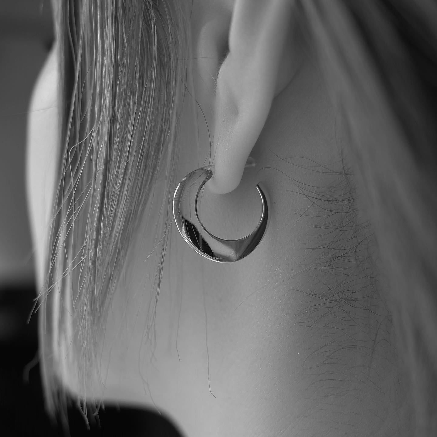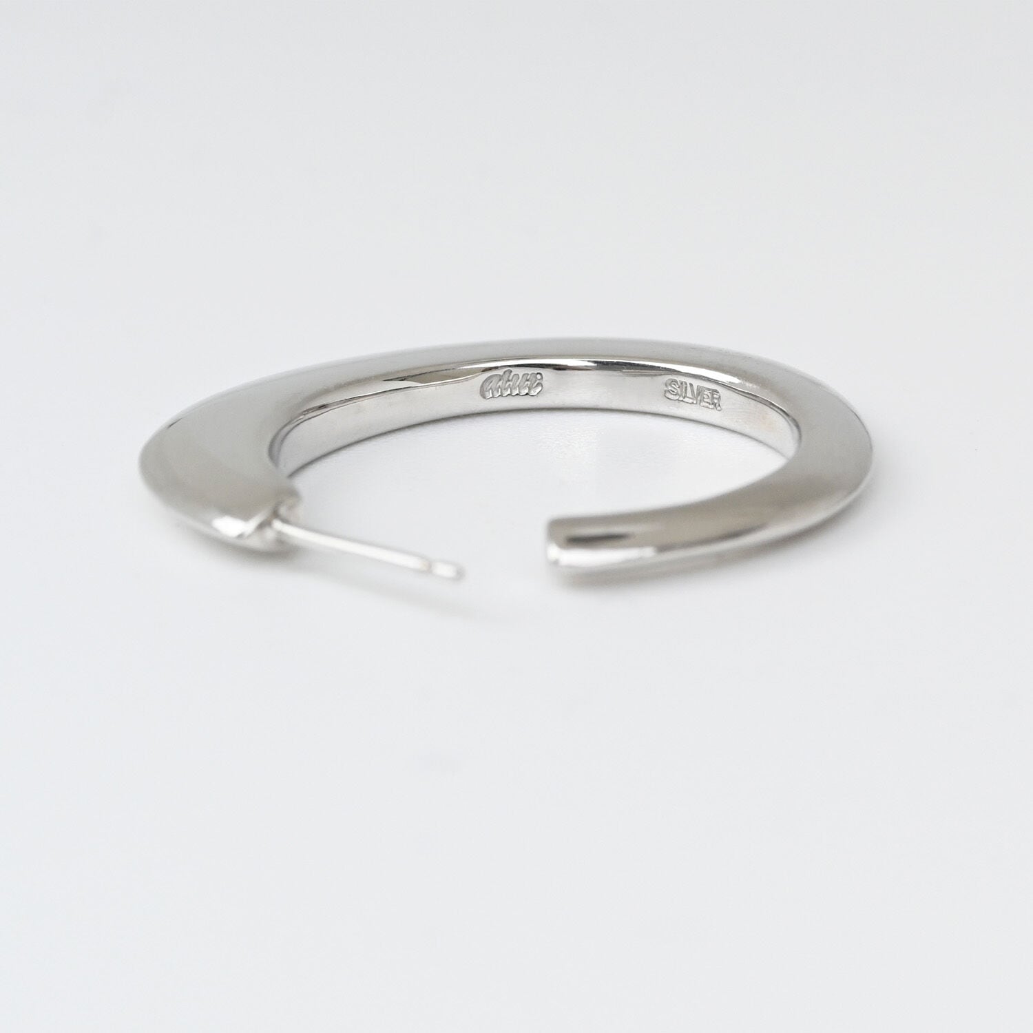 手彫りでカービングされた円みが特徴的なピアス。角はエッジを効かせてシャープな印象に。ペア販売。ピアスキャッチ付き。(P4では[Simon earrings S size]と[Simon earrings L size]のサイズの比較がご覧いただけます。)