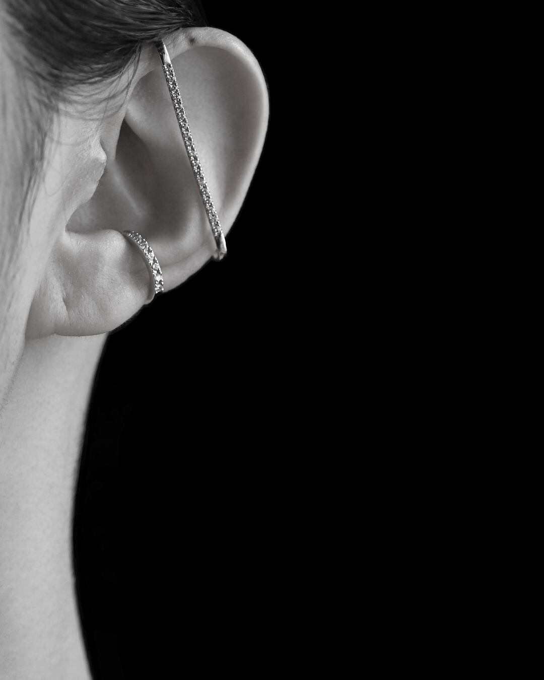 洗練された輝きを耳元に添える、ミニマルなダイヤモンドのイヤカフ。シンプルなシルエットは、ひとつでも、重ね付けでも美しく映えるデザインです。