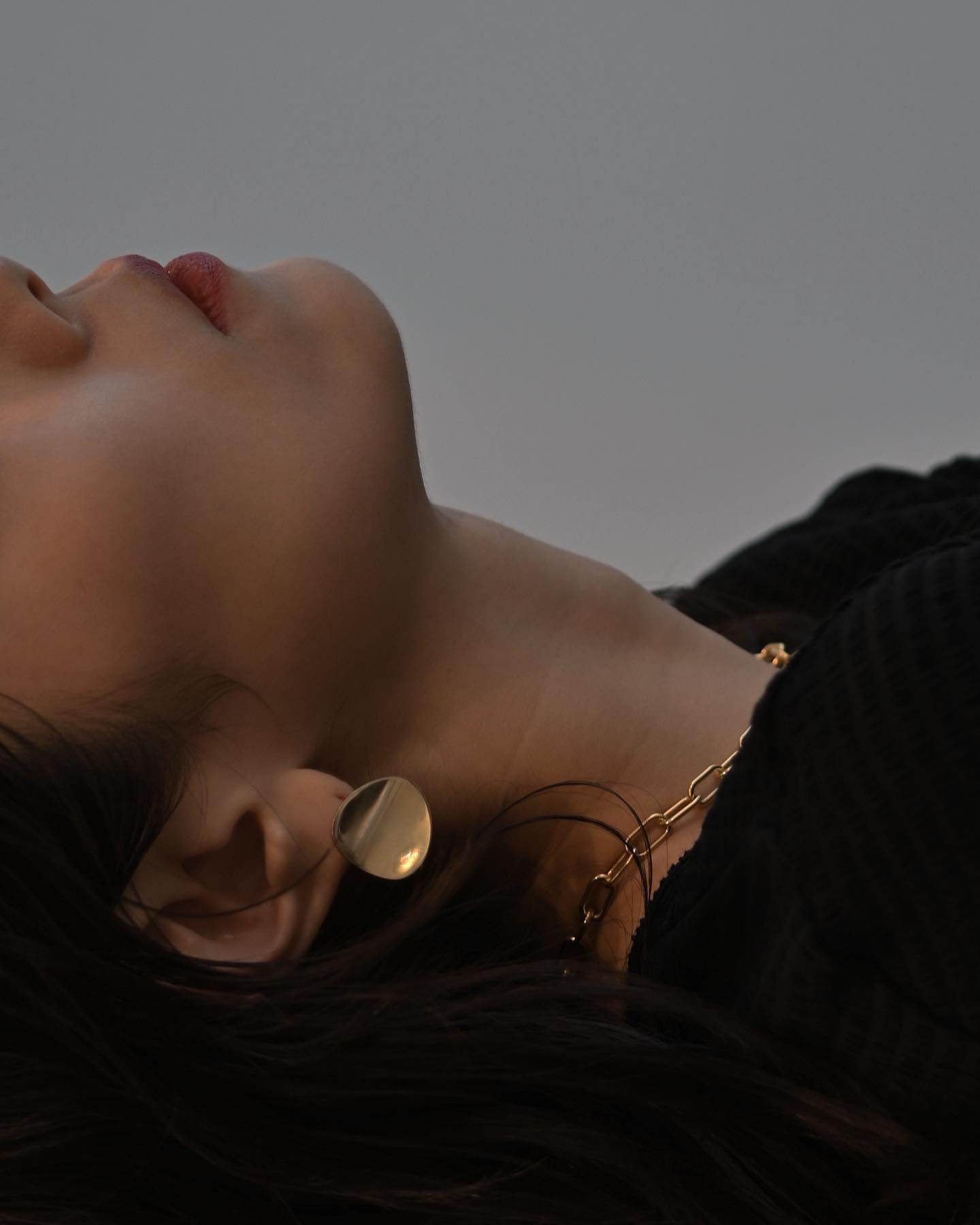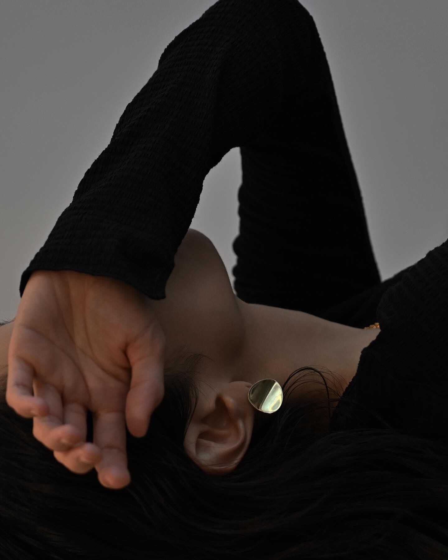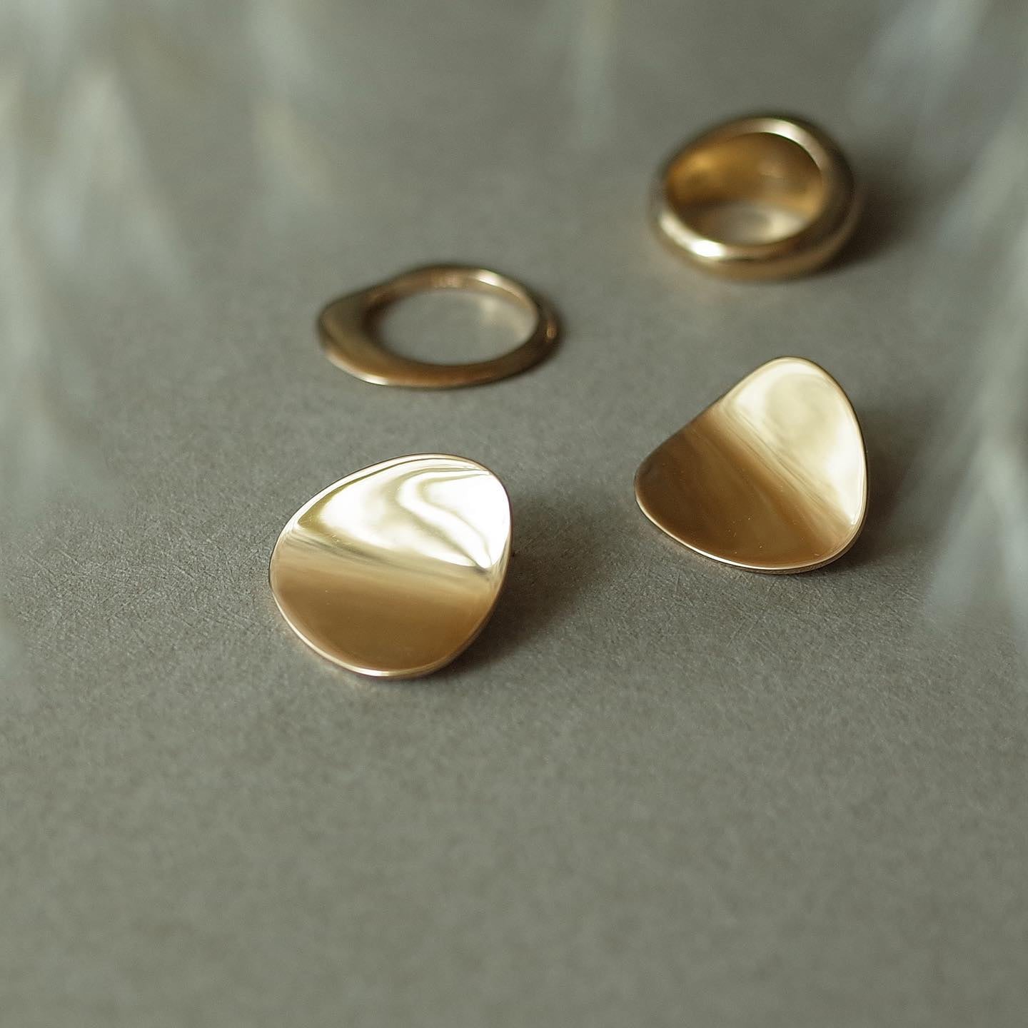 一枚の花弁のような形をしたピアス。光を反射する鏡面仕上げなので、遠目からでも存在感を放ちます。左右線対称なデザインです。ペア販売、ピアスキャッチ付き。(P4ではサイズSとLの比較がご覧いただけます。P6一番下に着用しています。)